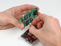 Carefully maneuver the logic board out of the outer case, minding the cables still connecting the two components.