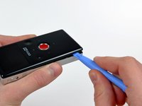 Continue running the plastic opening tool in the seam between the front and outer cases until the left, right, and bottom edges are free.