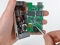 Remove the four silver Phillips screws attaching the logic board to the outer case.