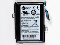 Remove the two small silver Phillips screws securing the battery to the outer case.