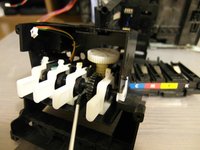 This is the ink cartridge pumping mechanism. The last DC motor we detached controls this mechanism.