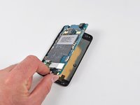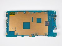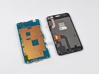 After disconnecting ribbon cables for the display, digitizer, and front camera, the logic board can be removed from the front half of the Evo.