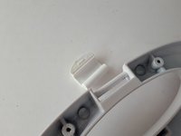Now the metal plates are loose from the plastic cover. The plates need to be moved until the end of their hinge slots to slide them apart.