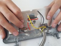 Remove the cords of the lights by pulling them out of their snap fit.