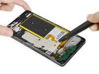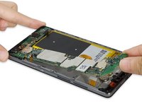 Remove the battery. There is strong adhesive under the battery—work carefully to pry it free and be careful not to puncture the battery.