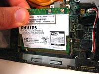 To remove Wi-Fi card, first disconnect both display wires on the top right.