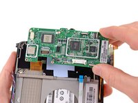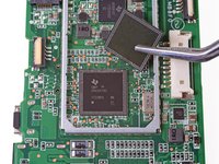 A few more twists with the Phillips #0 from our 64 Bit Driver Kit releases the motherboard from the Kindle's grasp.