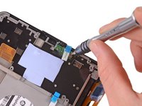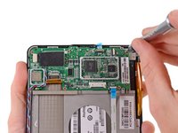 The long L-folded flat cable connects to a small PCB in the lower right of the first photo of step 13. What is this small PCB used for? Looks to me like its an ambient light sensor. You can see an opaque dot in the top left corner of front view photos. Cas - That small PCB pokes through a hole at the top of the display bezel, which tells us that it is likely the ambient light sensor. Would be nice to know what it is in the upper left corner. Even the guys at Amazon are clueless. Responses are "It is PROBABLY a light sensor". Could someone find out for sure? I am surprised there was no mention of it in the teardown at all.
