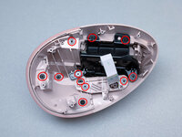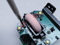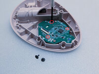 Take out the 2 screws for the left button and remove it in the same way as the right button. The screws for these two buttons are the same.