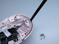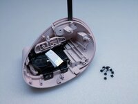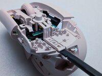 One thing I noticed is that the mouse doesn't power on and connect if the scroll wheel is missing. If you're trying to test the mouse before fully reassembling, it's worth putting the switch assembly back together first (as pictured in step 18) so that the scroll wheel is in position.