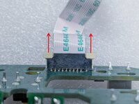 The ribbon cable can be released from the switch board by pulling on the two white tabs on the connector. The ribbon cable should come out very easily, do not force it.