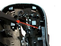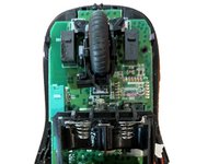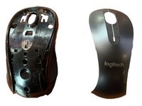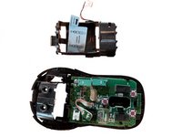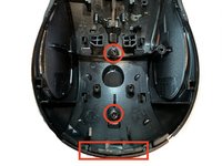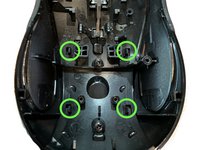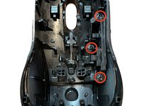 Remove the two screws in the battery bay that hold the top grip to the base of the mouse.