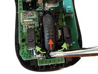 Use a Philips screwdriver to lift the tip of the scrollwheel up and away from the top of base of the mouse