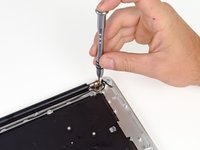 The display assembly is screwed to the upper case with six T8 Torx screws.