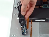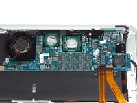 We found Intel's new Core 2 Duo chip right beneath the heat sink (no surprises there). A temperature sensor sits on an external board glued between the CPU and graphics chips. A high-resolution image is available here.