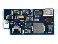 The RF module, in all its blue glory. We spliced together two photos, so this image shows the front and back of the PCB.