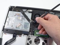 Round two with the spudger frees the AirPort/Bluetooth board and unearths the optical drive.