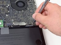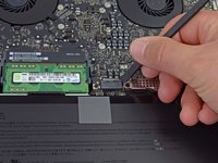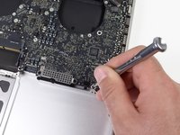 Our faithful spudger helps us disconnect the battery, which you should always do when performing repairs or maintenance on your MacBook Pro.