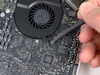 Unlike its cousins, the 2012 MacBook Pro does not have irregularly-spaced fan blades. Just boring old fans in here.