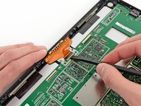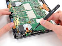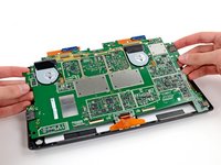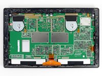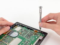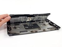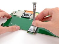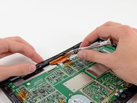We've cracked the surface (figuratively speaking, of course—we would never damage a device…), but we continue digging deeper with our spudger and screwdriver until we can remove the motherboard assembly and the SSD.