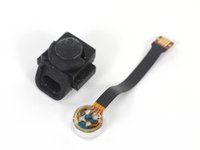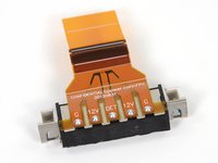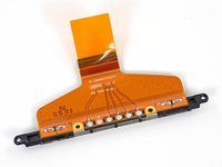 We use our ESD-safe tweezers to safely remove the volume buttons and headphone jack, which are tied together in a neat package by a ribbon cable.