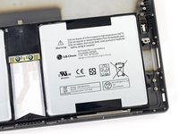 Microsoft spared no expense when it came to keeping the Surface Pro going. They sourced the Cadillac of batteries from LG: an Escalade 42 Wh unit. The battery is rated for 7.4 V and 5676 mAh.