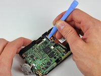 Use a plastic opening tool to pop the speaker assembly out of the metal shield.