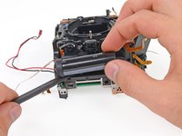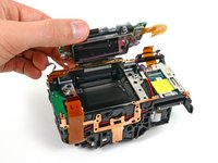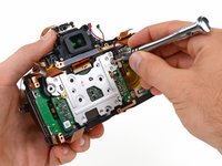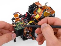 This is the point in the teardown when stuff just starts coming out of the device left and right. A lens mount here, a ribbon cable there, whatever that is over there... the only thing that could make this better is if it was made into an awesome montage and set to "You're the Best," à la Karate Kid.