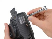 How hidden are these screws? We found them underneath the eye cup, rubber grip, and viewfinder diopter dial.