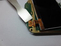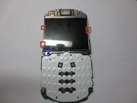 The lcd screen is held in by a steel bracket. This bracket is held in place by the clips marked with red squares. The easit way to release it is by levering the one on the right (as pictured) and the bracket should come off.