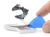 Separating the two white halves of the battery housing is a bit more of a challenge—they're connected via clips and plastic nibs, which are not only glued but seem to break easily as well. With careful heating and prying this is manageable, but definitely not ideal.