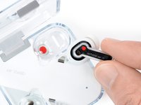 We're unable to find any model number on the Ear (1)—not even an L or R to identify which bud goes where in the charging case (or your ears). Instead, the "left" and "right" indicators consist of red and white dots on the earbud stems, which match up to similar markings within the charging case.