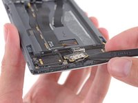 We pull off an interior cover to access the battery connector. If our calculations are correct, the OnePlus One's battery is about to be subtracted.