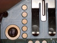 Last picture is most likely JTAG pogo contact points. For programming and testing. The board seems to be like 3-4+ layer board just based on the pictures. Also can't really tell you what chips those are with that quality of a picture. However the two little chips under the mounting hole on the picture in step 4 looks to be the DC Boost IC to keep constant voltage throughout the batteries life. The chip to the left of those boost converts is most likely the Bluetooth IC (just guessing by the location and the traces around it). Hope this helps :)