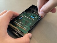Now, use a flathead screwdriver to unfasten the clips holding the PCB in place. Once two of the four clips are unfastened, pull out the PCB from the calculator.
