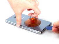 Heat the back cover and cut it sticker underneath. Really strong adhesive. Please be careful with the glass and edged back cover.