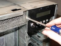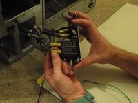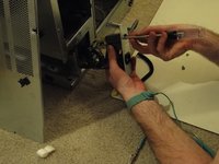 Two thumbscrews hold this cable in place. If these screws are stuck, a flat screwdriver can be used.