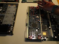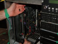 Remove the Infinite Reality frontplane by pulling it straight out. This circuit board connects the raster manager boards (up to 4) to the display generator.