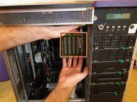 This sled holds the system disk, a 10k RPM 9GB Quantum. Slow and small by today's standard, it is typical for late 90s technology.