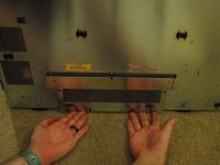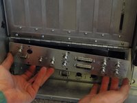 To remove the top skin, remove both side skins. Slide a blade screwdriver into the tab on the right side of the skin, and push the skin to the left.