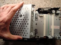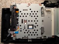 Once all the screws are gone we can lift the metal frame by using a flathead screw and some leverage to unlock all four sides from the plastic case of the optical drive.