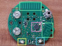 In the last step on the other side of the PCB we saw a Bluetooth IC. On this side of the PCB we can also find the antenna for it (green).