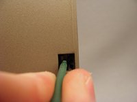 Remove the T10 torx screw and extract the stiff wire cable brace from the left side