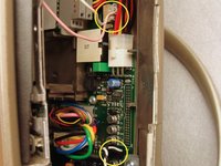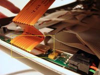 Carefully peel back the tape securing the cables to the white, plastic logic board cover. Pull the cables back to reveal the back side of the logic board.