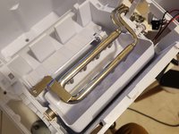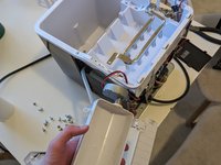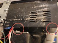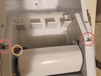 Once drained, place ice maker on its side. Remove the highlighted screws that hold the back plastic cover in place.